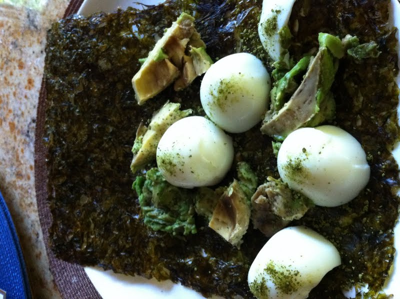 For some reason I really wanted this for breakfast. A Matcha Salt Egg White Avo Nori Wrap! Takes 2 seconds to make if you have the ingredients ready from before. I have a supply of hard boiled eggs in the fridge at all times (super convenient protein source). Super tasty notes of seaweed and green tea, with creamy avocado and savory sea salt!